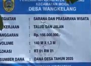 Dana Desa (DD),desa Wangkelang Kecamatan Moga Kabupaten Pemalang 2025 status desa mandiri, sesuai pembaharuan data terakhir pada : 10 Juli 2025 Rp. 967.389.000 ( Pagu ) – Rp. 527.534.200 ( Penyaluran ), pertanyaannya penyaluran kegiatan pembangunan sarana dan prasarana wisata, pekerjaan talud dan jalan menyerap anggaran DD sebesar Rp.198.000.000, ternyata di bangun di atas tanah milik pribadi Kepala Desa.