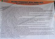 Pendaftaran dibuka mulai tanggal 18 November hingga – 1 Desember 2025, dengan tahapan seleksi administrasi, ujian tertulis, dan wawancara yang akan berlangsung secara bertahap sesuai jadwal yang diumumkan di kantor desa.