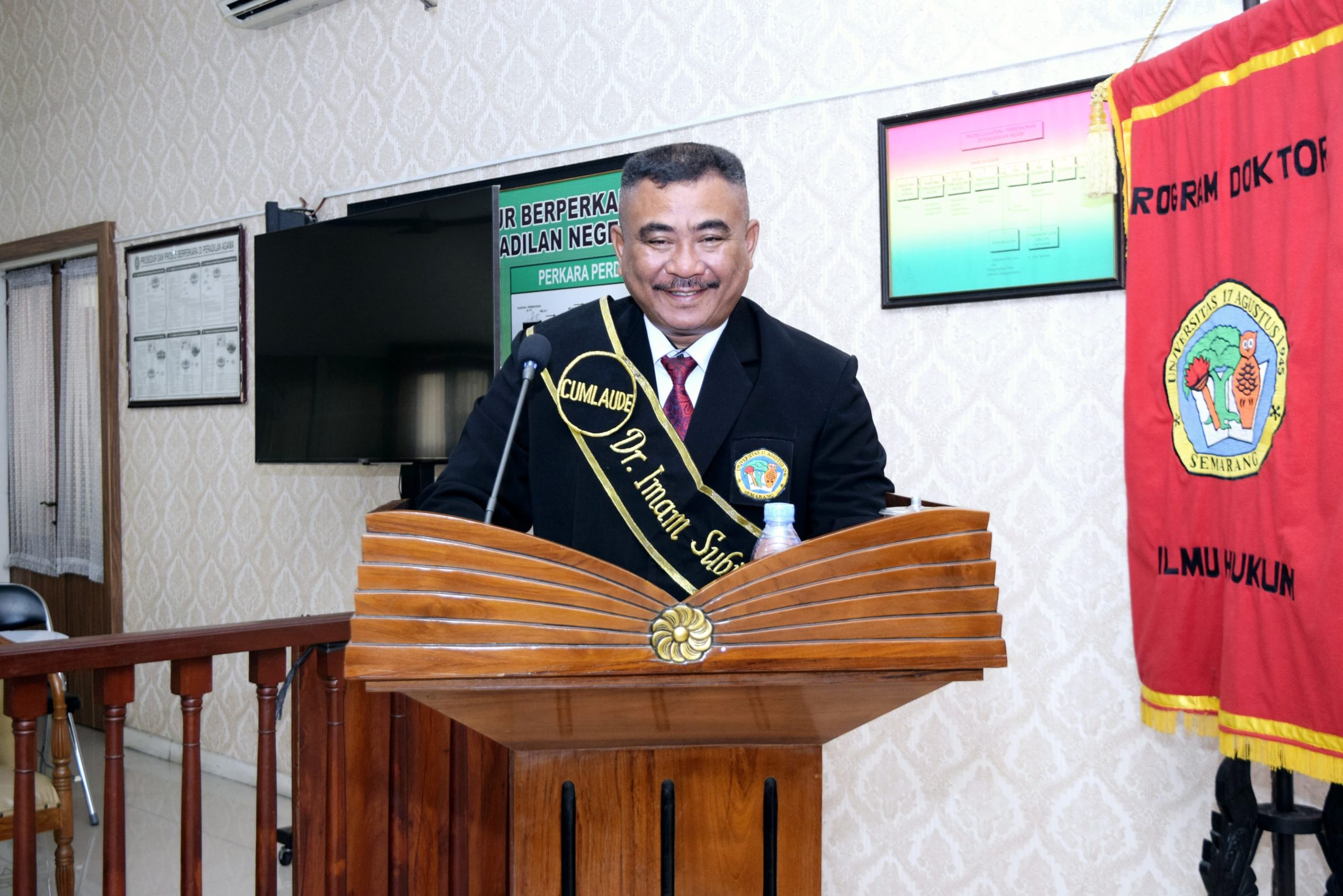 Sebagai pelengkap, capaian ini juga menegaskan kualitas institusi pendidikan yang menaunginya. Program Doktor Ilmu Hukum, Fakultas Hukum UNTAG Semarang yang telah terakreditasi unggul kembali meluluskan doktor baru. Dr. Imam Subiyanto, S.H., M.H., tercatat sebagai bagian dari Angkatan XVI dan merupakan doktor ke-162 yang dilahirkan oleh program tersebut. Ia menyelesaikan studi dalam waktu relatif singkat, yakni 2 tahun 6 bulan 28 hari, sebuah capaian yang menunjukkan efektivitas, konsistensi, dan dedikasi tinggi dalam menjalani proses akademik.