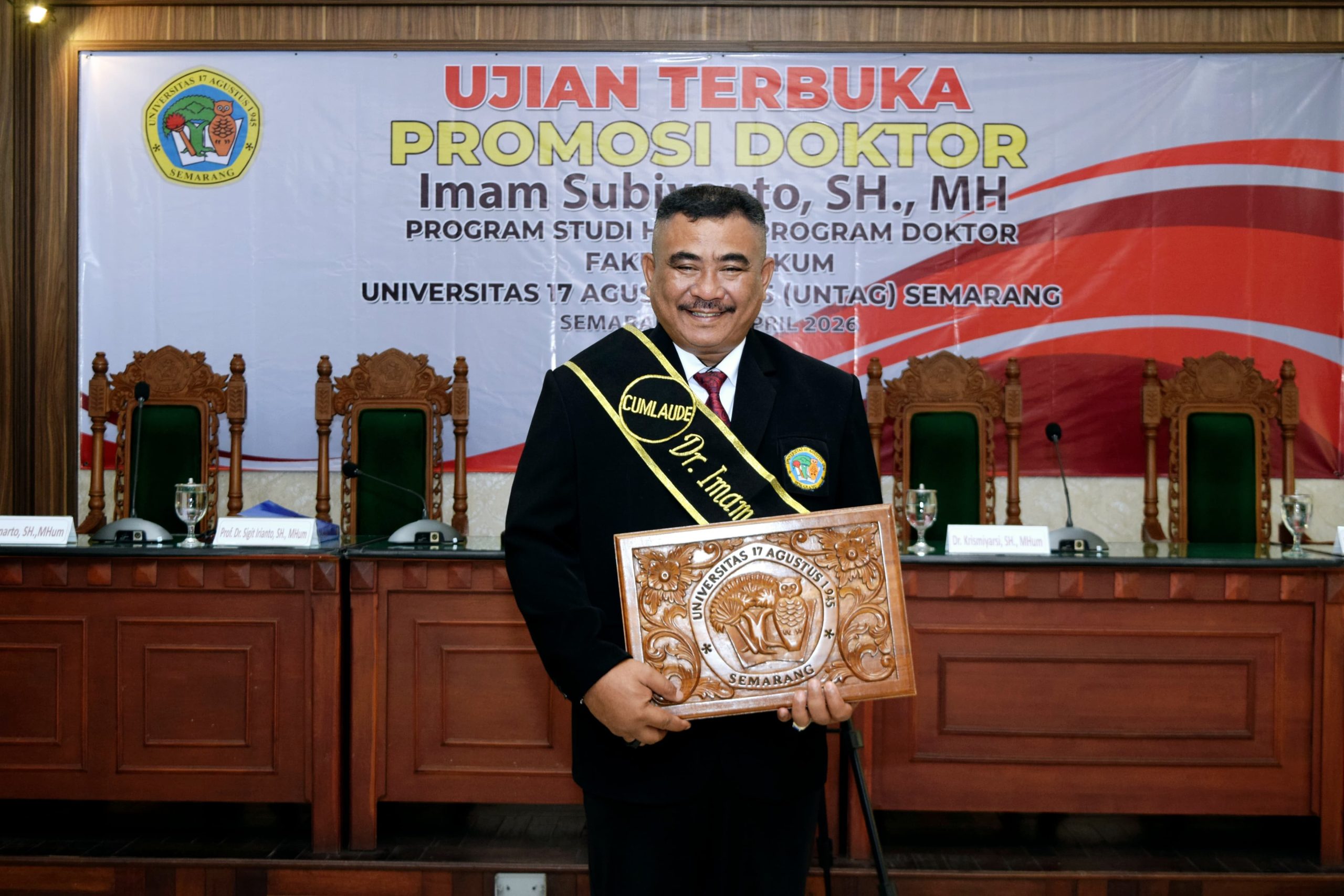 RABN.CO.ID, SEMARANG – Pencapaian akademik pada jenjang doktoral selalu menjadi penanda penting dalam dunia keilmuan, terutama dalam bidang hukum yang menuntut ketajaman analisis serta kedalaman refleksi terhadap realitas sosial. Hal ini tercermin dalam keberhasilan Dr. Imam Subiyanto, S.H., M.H., yang resmi meraih gelar Doktor Ilmu Hukum (PDIH) dari Universitas 17 Agustus (UNTAG) Semarang dengan predikat Cum Laude dan Indeks Prestasi Kumulatif (IPK) 3,88.Senin (13/4/2026)