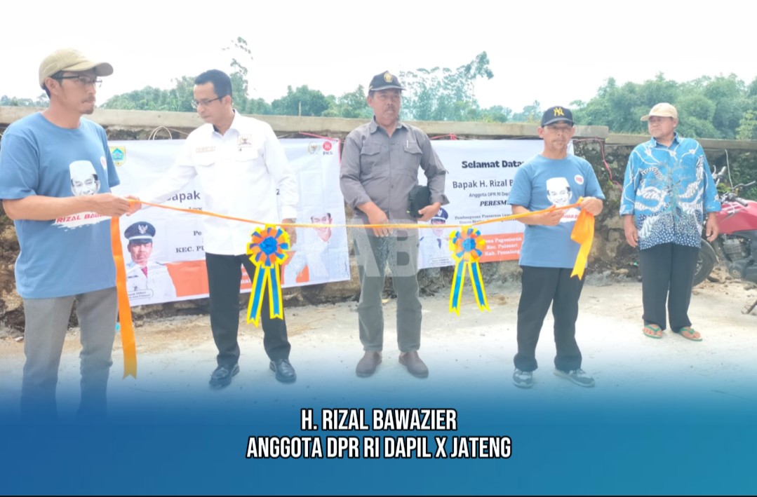RABN.CO.ID, PEMALANG – Kamis (11/12/2025), Anggota DPR RI Dapil X Jawa Tengah, H. Rizal Bawazier, meresmikan sejumlah pembangunan jalan di Kabupaten Pemalang melalui seremoni pemotongan pita di tiga titik berbeda: Desa Watukumpul–Tambi Kecamatan Watukumpul, Desa Pagenteran–Batusari Kecamatan Pulosari, dan Desa Gendong Kecamatan Moga. Acara di setiap titik turut dihadiri perangkat desa, masyarakat, serta relawan H. Rizal Bawazier yang mendampingi penuh jalannya kegiatan.
