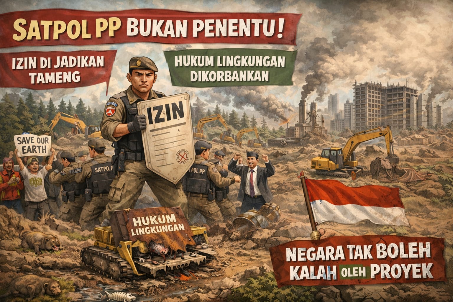 SATPOL PP BUKAN PENENTU: IZIN DIJADIKAN TAMENG, HUKUM LINGKUNGAN DIKORBANKAN ,NEGARA TAK BOLEH KALAH OLEH PROYEK