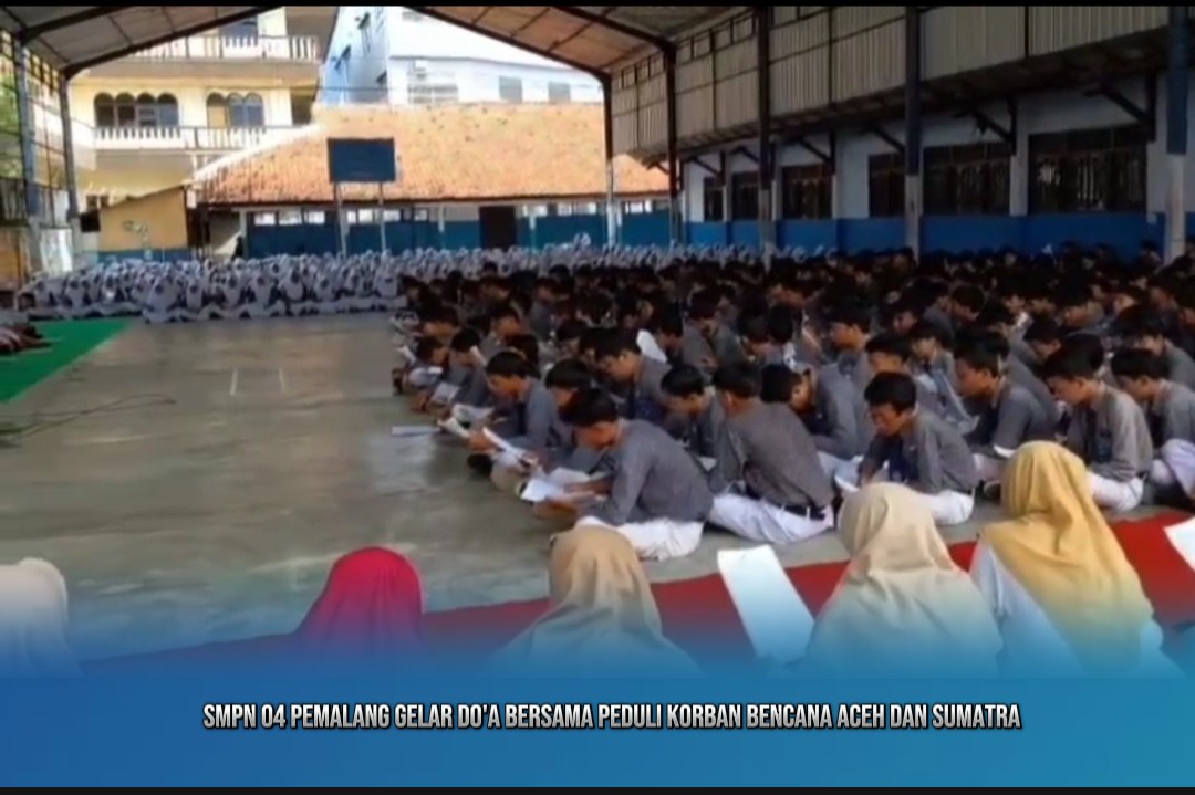 RABN.CO.ID, PEMALANG – 10 Desember 2025, SMPN 04 Pemalang menggelar kegiatan doa bersama sebagai bentuk kepedulian terhadap para korban bencana alam yang melanda Aceh dan Sumatra beberapa waktu lalu. Aksi solidaritas ini berlangsung di Gedung Olahraga SMPN 04 Pemalang dan diikuti oleh seluruh siswa, kepala sekolah, serta jajaran guru.